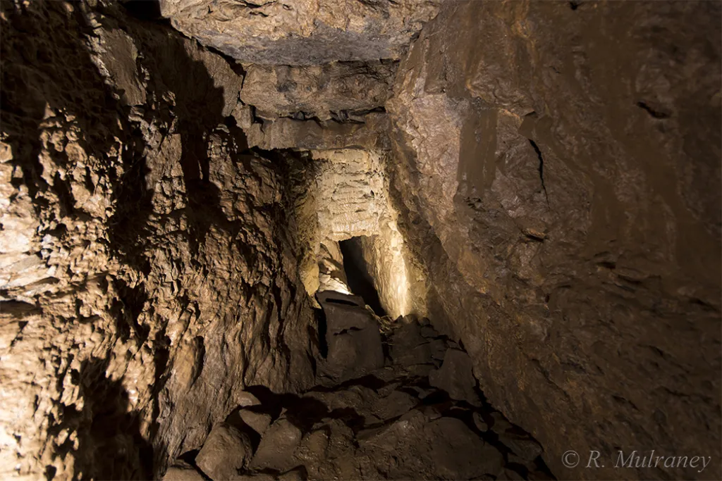 Uaimh na gCat, The Cave of the Cats is described in our early literature as one of the principal portals into the Irish Otherworld. This extensive limestone cavern was venerated by the communities who resided at Rathcroghan in the early medieval period, to such a degree that they constructed a formal entrance and passageway to provide access into this geological phenomenon. Ancient ogham inscriptions are to be found within the passage entrance, while the early medieval literary sources are replete with tales which concern the cave. These are particularly associated the Morrigan (Ireland’s battle goddess), monstrous creatures, warriors, and with the ancient seasonal festival of Samhain, the modern Halloween.
